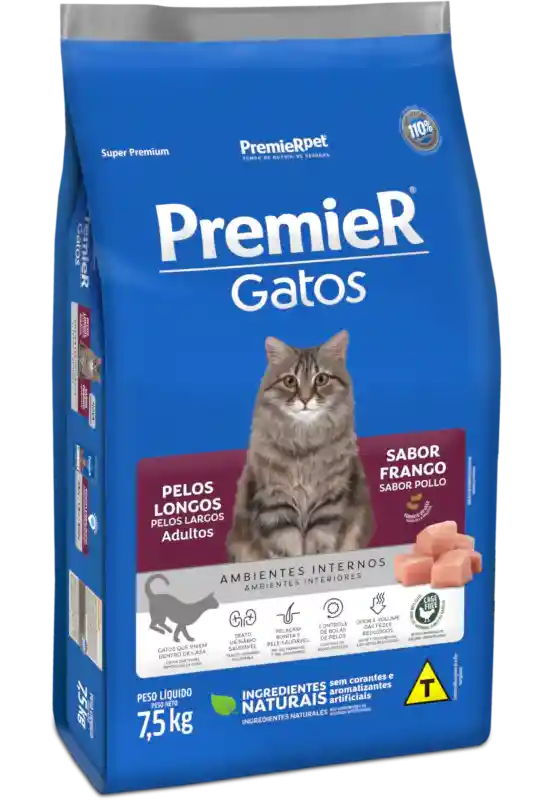PremieR Gatos Pelos Largos Adultos Pollo ofrece a su gato adulto de pelo largo un cuidado especial todos los días. Gracias a una combinación de ingredientes nobles, realza la belleza del pelaje, dejándolo exuberante y suave. Sin embargo, estos pelos densos pueden predisponer a la formación de las «bolas de pelo». Estas son el resultado de la acumulación de pelo en el tracto digestivo debido al hábito de lamerse de los felinos. PremieR Gatos Pelos Largos Adultos Pollo incluye en su fórmula fibras seleccionadas como la avena y pulpa de remolacha, que previenen la formación de esas indeseables «bolas de pelo».