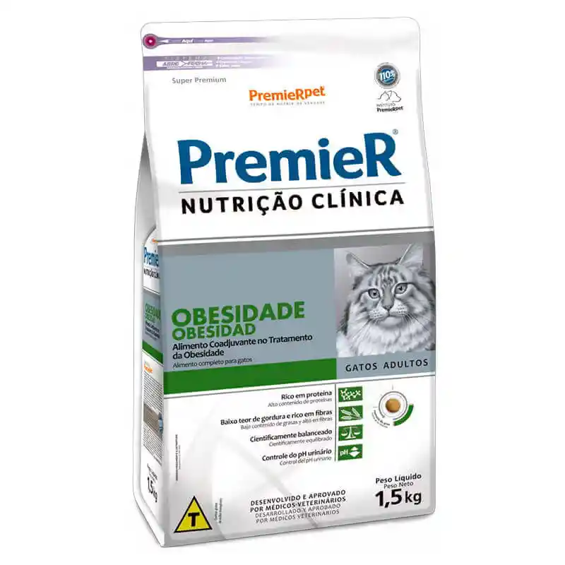 PremieR Nutrición Clínica Gatos con Obesidad es el alimento perfecto para gatos que buscan perder peso de manera saludable y efectiva. Con una alta concentración proteica, este alimento ayuda a mantener la masa magra durante el proceso de adelgazado.