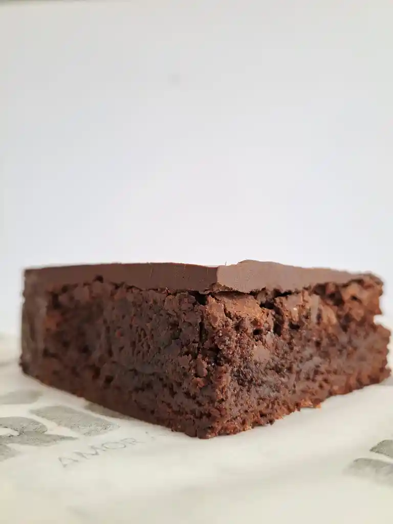 Delicioso Brownie con cobertura de medio cm de chocolate puro.