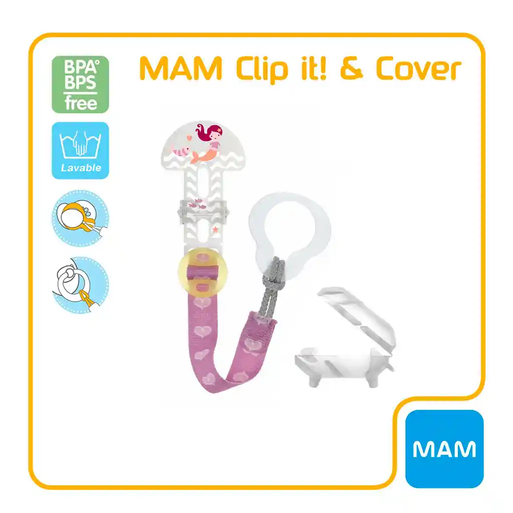 Más estable y versátil que nunca, el nuevo broche para chupetes MAM Clip puede combinarse con diversos tipos de chupetes y otros accesorios para bebés. Gracias a su innovadora característica de longitud ajustable, los padres y madres pueden adaptar el broche a cada situación. Como el lazo es flexible, es posible colocar en un abrir y cerrar de ojos chupetes con anilla, mordedores, juguetes y mucho más en el broche. La anilla desmontable permite fijar tanto chupetes MAM como cualquier otro tipo de escudos. El nuevo mecanismo deslizante del clip permite abrir y cerrar la pinza del broche de manera fácil y con una sola mano. Protección de tetina para protegerla y mantenerla limpia. SE ENVÍA SEGÚN DISPONIBILIDAD