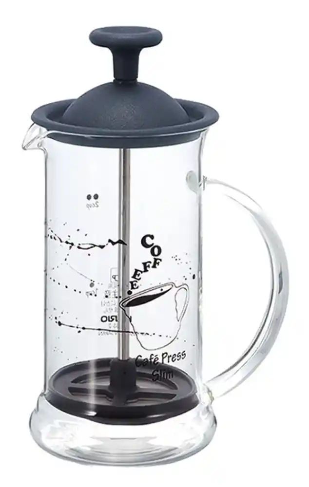 Cafe Press Slim S / Transparent Black The press draws out the coffee oil that gives coffee its umami flavor, so that you can enjoy the unique taste of the coffee beans you have chosen. COLOR Transparent Black SIZE W113 × D78 × H172mm CAPACITY 1-2 cups WEIGHT(incl.individual box) MATERIAL Glass bowl : Heatproof glass Lid, Knob : Polypropylene Filter mesh parts : Polypropylene, Stainless steel Shaft : Stainless steel Filter packing: Silicone rubber Glass bowl, Lid, Knob, Shaft, Filter mesh parts : MADE IN JAPAN Filter packing : MADE IN VIETNAM