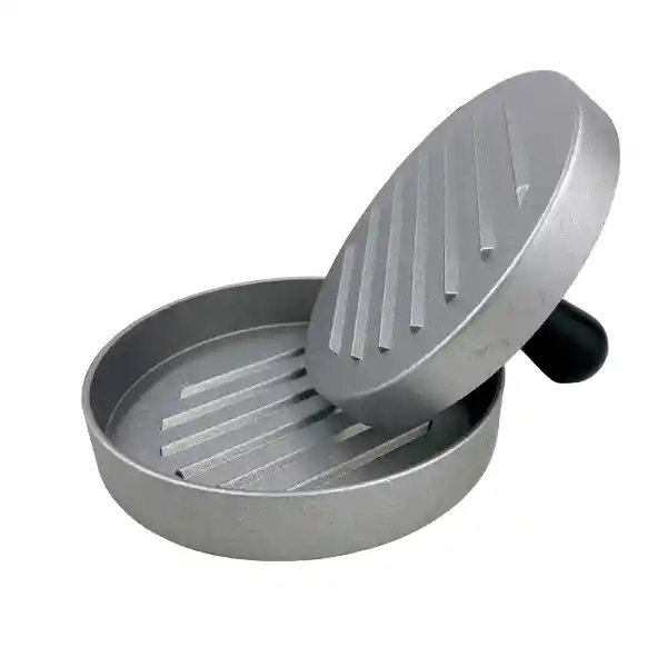 Fácil de usar. Fabricado en aleación de aluminio resistente. Es mas eficiente que el de plástico. La manija es desmontable de plástica solido. El canal de presión único está diseñado para permitir un pastel de carne más sabroso. La superficie antiadherente del producto con proceso de protección del medio ambiente es fácil de limpiar y desmontar. -Color: plata -Peso: 268g -Tamaño: 11,7X 9,5 CM