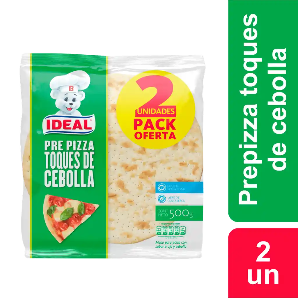 Masa para pizza con toques de cebolla, pack de 2 unidades