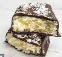 relleno con leche condensada de coco y coco rallado, bañado en chocolate vegano
