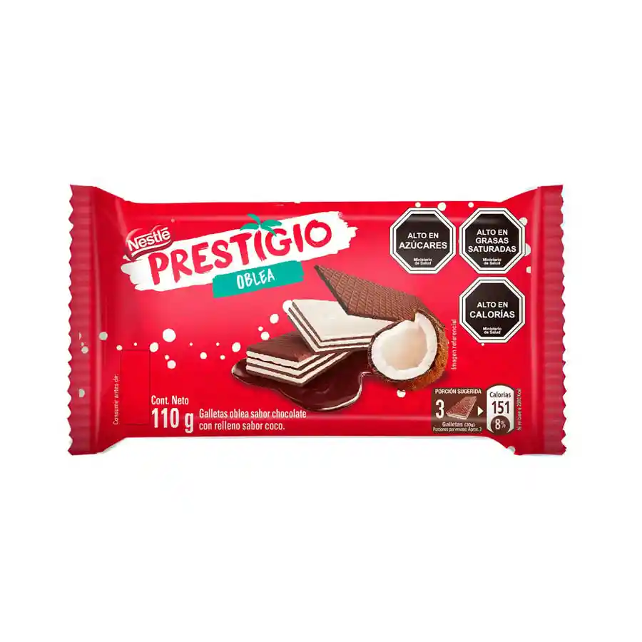 Galletas oblea sabor chocolate con relleno sabor a coco.