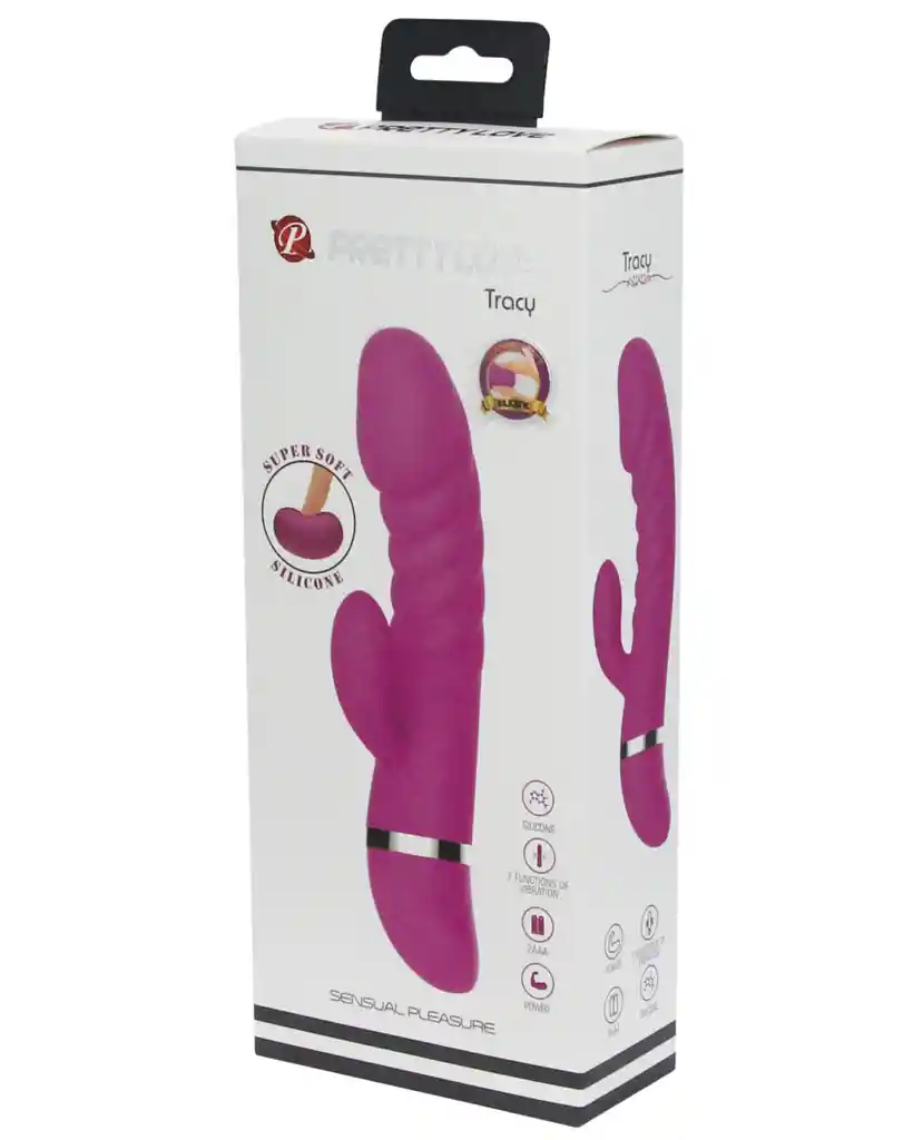 Tracy Vibrador Dual es de silicona super suave con 7 modos de vibración, un juguete que te entregará grandes momentos de placer. Ligeramente curvo para alcanzar su punto G y una extensión en la base diseñada para estimular tu clítoris y asegurar tu orgasmo. Hecho con una silicona super suave y de alta calidad que brinda una sensación sexy y sedosa. Especificaciones Vibrador Tracy Dual: Modos: 7 modos de vibración. 2 motores independientes Material: Silicona + ABS. Longitud total: 18,8 cm. Longitud insertable: 16 cm. Diámetro: 3,5 cm. Modo de Carga: 2 Pilas AAA (No Incluidas) A prueba de agua (NO sumergible)