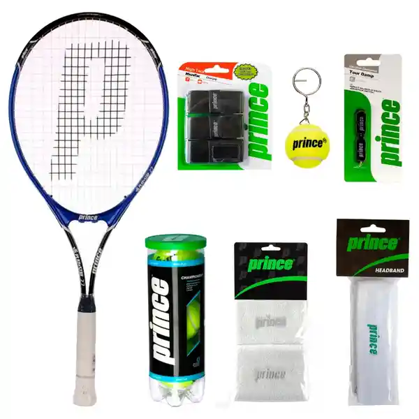 Pack Prince Contiene 7 Unidades. Raqueta 1 Und + Tarro de Pelota 1 Und + Championship Cintillo 1 Und + Muñequeras 1 Par + Overgrip Microtac Anti Vibrador 1 Und + Tour Damp 1 Und + Llavero Para Los Verdaderos Fanáticos 1 Und. Incursionar en el Mundo Del Tenis Como Todo un Profesional. Esta Nueva Maravillosa y Muy Moderna Versión de la Raqueta de Prince es Muy Liviana Haciéndola Ideal Para Todos Aquellos Jugadores Principiantes Que Van Desde Los 12 Años en Adelante ya Que Está Diseñada Con Aluminio (Sin Funda). Comienza Tus Primeras Prácticas y Torneos Con Este Pack Totalmente Completo de Tenis.