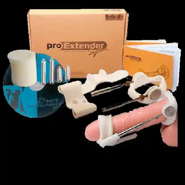 Aumentará su longitud y circunferencia del pene, así como darle confianza en su vida sexual. Resultados del ProExtender son permanentes entre mayor tiempo se utilice la ganancia de tamaño será mayor. Proporciona una tracción sin dolor en el pene. Es un aparato totalmente ajustable que se utiliza para aumentar la fuerza en el cuerpo del pene. De esta manera el principal músculo del pene, los cuerpos cavernosos, se estiran y se extienden con el tiempo. Características principales: Agranda el pene de 3 a 7 cms. Engrosa el pene de 2 a 3 cms. No causa dolor ni molestias Mejora erecciones y penetración Resultados visible en 20 días Único método comprobado científicamente Equipo de alta calidad de acero quirúrgico y plástico estéril Se utiliza con el pene en estado flácido Puede caminar o ir al trabajo utilizando el aparato Método 100% saludable sin efectos secundarios Incluye base plástica, barra siliconada, tubo de metal y cd con manual