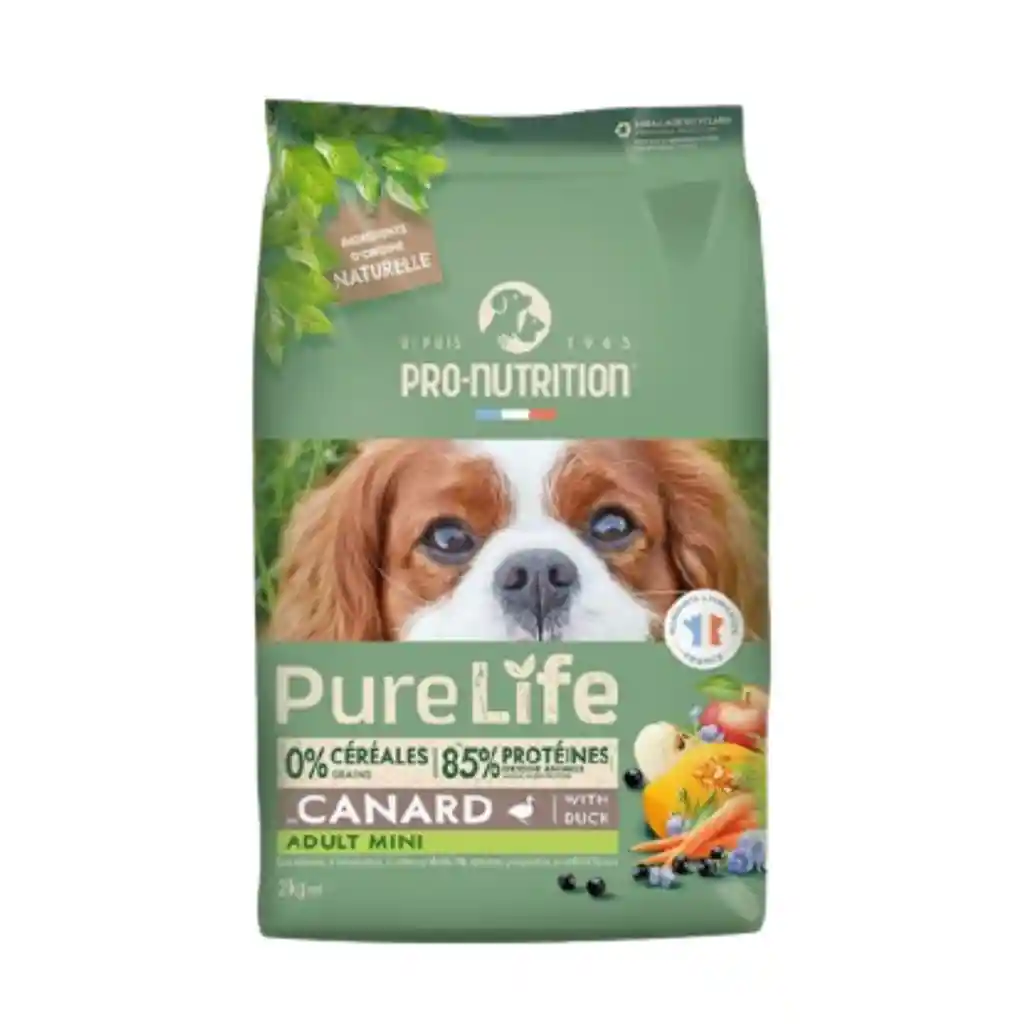 Alimento completo sin granos y sin gluten, específicamente formulado para cubrir las necesidades de perros adultos de razas pequeñas. Edad: Adulto. Peso: Menor a 10kg. BENEFICIOS: DEFENSAS NATURALES Gracias a un aporte de vitamina E, selenio y fibras de manzana ricas en antioxidantes naturales, nuestra croqueta Pure Life Adult Mini con Pato contribuye al buen funcionamiento de las defensas naturales de perros adultos de tamaño pequeño. INGREDIENTES: COMPOSICIÓN Proteínas animales deshidratadas 30% (pollo, pato 4%, pavo, cerdo). Fécula de patata. Almidón de guisantes. Grasa animal (pato, cerdo). Fibras de haba*. Fibras de manzana* (6%). Patata dulce*. Guisantes*. Linaza*. Hidrolizados de proteínas animales. Aceite de colza. Levadura de cerveza. Alcachofa*. Autolisados de pescado* (0,4%). Zanahorias deshidratadas*. Aceite de pescado. Sal marina. Fructooligosacáridos. Hinojo*. Algas*. Calabaza*. Cranberry*. Cassis*. Granada*. Extractos de levadura (Saccharomyces cerevisiae, Ciberlindera Jadini). Acerola*. Espino amarillo*. Arándano*. Melón*. Vitaminas y oligoelementos. * Ingredientes de origen natural. CONTENIDO: 2 Kg.