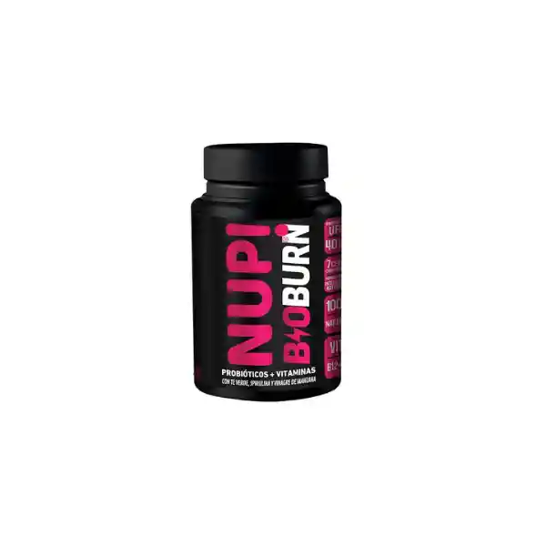 PROBIÓTICOS + VITAMINAS NUP!®BIOBURN es ideal para potenciar el metabolismo, rutina de ejercicios y ayudar a regular el estancamiento de peso. Con 40mil millones de probióticos + spirulina + vitamina D3 + Vitaminas B12 + Granada FD + Té verde + alcachofa liofilizada + vinagre de manzana + frambuesa FD + poroto blanco y lecitina de soya. Modo de consumo: 2 cápsulas al día 20 min antes de una comida.