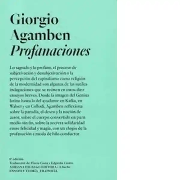 La Cuarta Edición de Uno de Los Clásicos Del Catálogo de Adriana Hidalgo. Este Libro de Giorgio Agamben Reúne Diez Ensayos Breves Diez Sutiles Indagaciones Acerca de Algunos Temas Centrales de la Filosofía Contemporánea: Lo Sagrado y lo Profano. El Pensamiento de Agamben Toma Aquí Diferentes Ritmos Tonalidades Objetos: Se Sumerge en Mitos Antiguos y Figuras Cercanas -Desde la Imagen Del Genius Latino Hasta la Del Ayudante en Kafka en Walser en Collodi. Reflexiona Sobre la Parodia Sobre el Deseo Sobre la Noción de Autor en Michel Foucault Sobre el Cuerpo Convertido en un Puro Medio Sin Fin Sobre la Secreta Solidaridad Entre Felicidad y Magia. Agamben se Luce en Este Libro Con Una Prosa Luminosa e Inspirada. Título: Profanaciones- Giorgio Agamben Autores: Giorgio Agamben Isbn: 9789878388977 Editorial: Adriana Hidalgo Editora Medidas: 21 x 14 Cantidad de Páginas: 120 Tipo de Encuadernación: Rústica Con Solapas Idioma: Español Año de Alta en el Sistema: 2022.