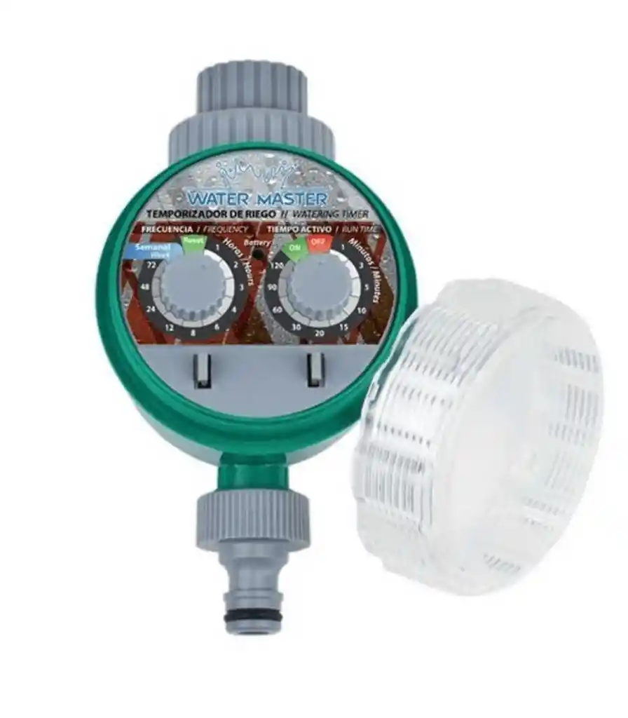 ESPECIFICACIONES DEL PROGRAMADOR DE RIEGO ANALÓGICO Utiliza una eficaz válvula solenoide de paso 15 combinaciones posibles Hasta 8 riegos diarios Puede programar que el equipo riegue su jardín en horas de menor evaporación Programación de frecuencia y duración del riego Fácil y rápido de instalar en cualquier grifo Funciona con 2 pilas AAA (no incluidas) CARACTERÍSTICAS Frecuencia Tiempo(horas): 1-72 Tipo Bateria: 2 Pilas AA