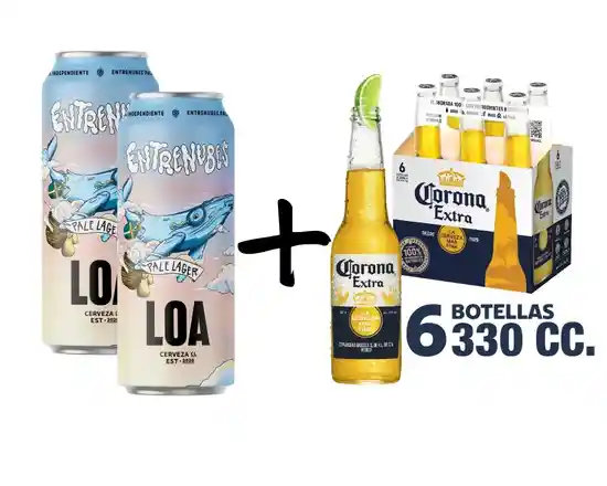 Promo Corona x6 Botellin 330cc + 2 Cervezas Loa Entrenubes 473cc