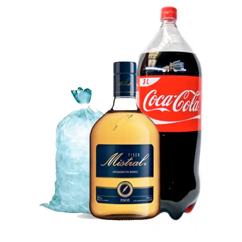 Promo Mistral 1 lt + Bebida 3 Lt + Hielo Kilo