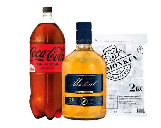 Promo Mistral 1000cc + Cocacola Zero 3 lts + 2kg hielo