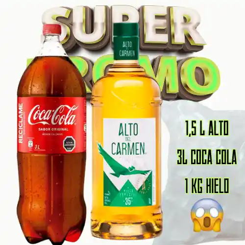 Super-PREVIA con 1,5 l Pisco Alto 35 3l Coca Cola normal 1kg Hielo premium--- Impresionante!