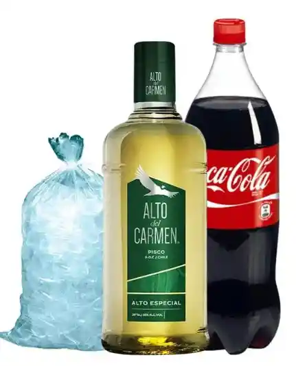 Alto del Carmen 1 lt + coca cola de 3 lts+ hielo