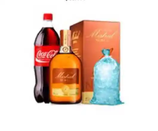 Botella de 750 ml - 40°, Bebida Coca cola de 1.5 litros , Hielo 1Kg