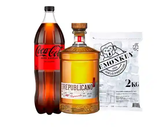 Promo Republicano Envejecido + Cocacola Zero 1.5lt + 2kg hielo