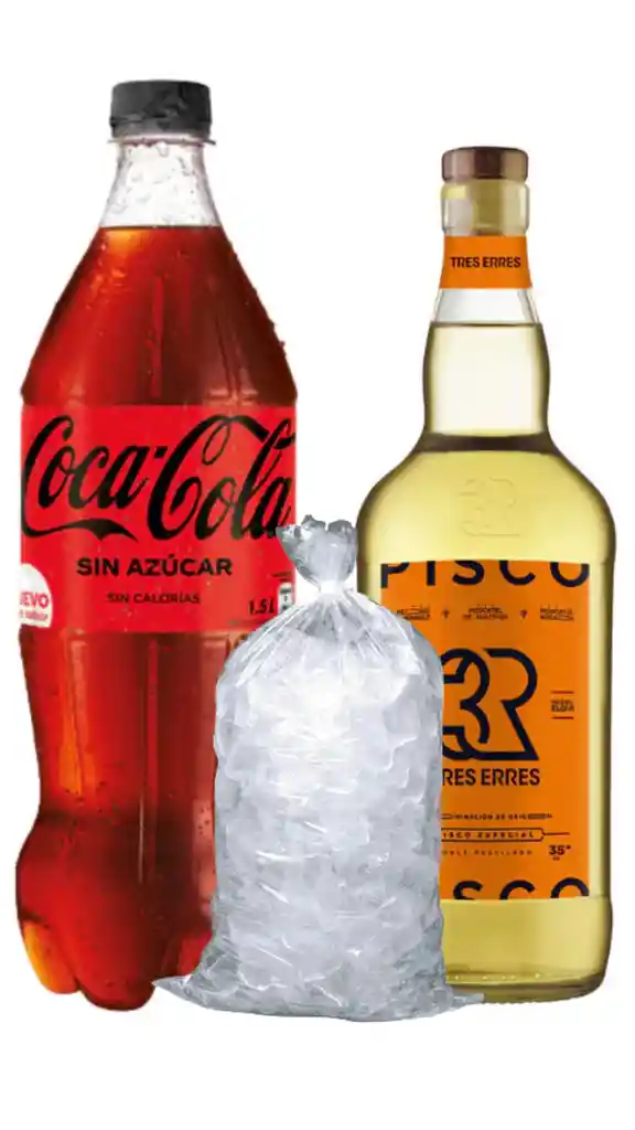Promo Tres R Litro + Coca Zero 1.5 + Hielo 1K