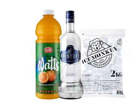 Promo Vodka Eristoff 700cc + Watts Naranja 1.5Lt + Hielo 2kg