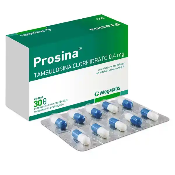 Tamsulosina Clorhidrato (0.4 mg). Caja Con 30 Cápsulas. Forma Farmacéutica: Cápsulas de Liberación Prolongada.