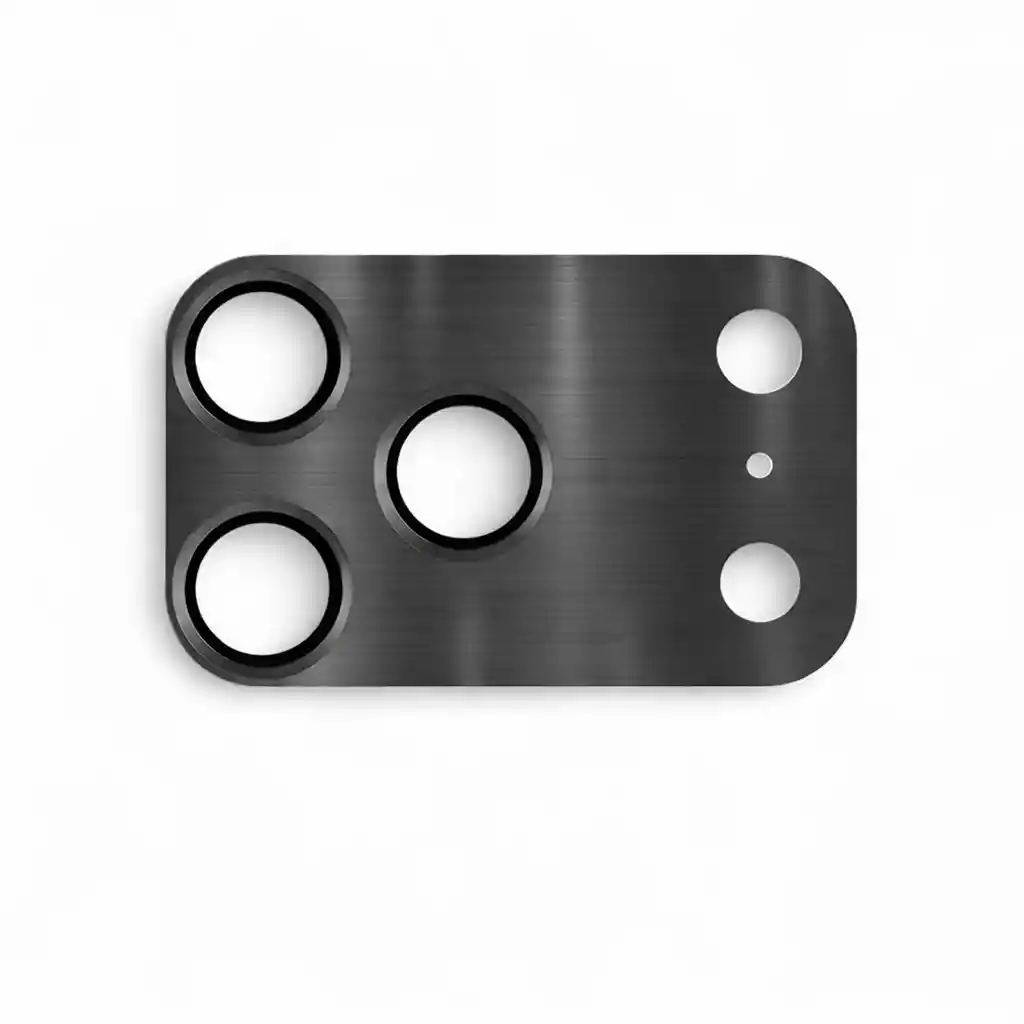 Protector de cámara metalizado gris oscuro para iPhone 17 Pro con acabado premium tipo aluminio cepillado que protege contra golpes, rayones y desgaste sin afectar la calidad de las fotos.