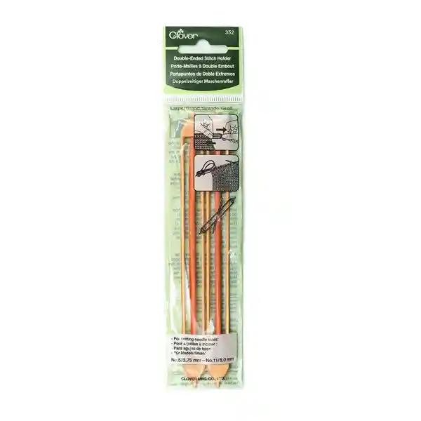 Los titulares de puntadas de doble punta son perfectos para sujetar de manera segura puntadas de trabajo en progreso mientras se centran en otras secciones del proyecto. Simplemente retire la tapa del extremo y deslice las puntadas activas en el pasador central y vuelva a colocar la tapa del extremo. Cuando esté listo para reanudar el trabajo, sus puntadas sostenidas de forma segura se pueden recuperar fácilmente desde cualquier lado del sujetador de puntadas, independientemente de la dirección desde la que se enhebraron.