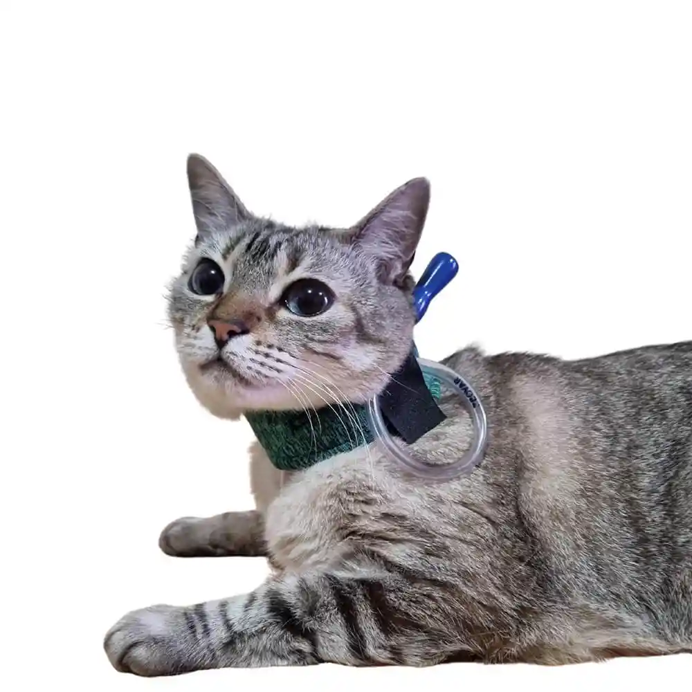 Práctico, cómodo e higiénico collar protector de sonda esofagica. Fabricado con tela de secado rápido para una máxima higiene, transpirable y anatómicamente ajustable. Instrucciones de uso: llevar el collar, ajustar el velcro alrededor del cuello, sin comprimirlo. El Collar tiene una abertura para pasar el tubo esofágico y velcros de soporte para acomodarlo cuando no se usa. Importante: supervise al animal, asegúrese durante su uso que el producto esté siempre seco, limpio, cómodo y adecuado al tamaño de su mascota. Si el animal necesita utilizarlo por períodos prolongados, será necesario alternar con un producto limpio y seco bajo supervisión veterinaria. Colores aleatorios (azul, verde, rojo y gris). Disponible en 2 tamaños: **ESTE PRODUCTO POR RAZONES SANITARIAS NO TIENE POSIBILIDAD DE CAMBIO UNA VEZ PROBADO: ELIGE MUY BIEN LA TALLA DE TU PELUDITO TALLA 1: 16 a 24 cm de circunferencia de cuello.