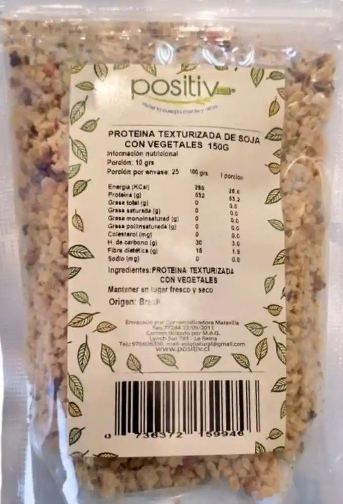 Proteína texturizada de soja con vegetales 150g Procedencia: Brazil
