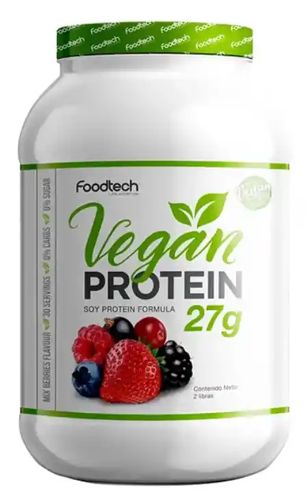 a Vegan protein de Foodtech es un batido de proteínas vegetal 100% orgánica, diseñada a base de proteína aislada de soya, refinada y filtrada para obtener una máxima calidad y digestibilidad. Esta proteína es ideal para todas aquellas personas que mantienen una alimentación vegana y quieren complementar su dieta con un aporte extra de proteínas. Con una porción de la Vegan Protein obtienes 27g de proteína lo que es una dosis ideal para entregarle al organismo este macronutriente tan importante.