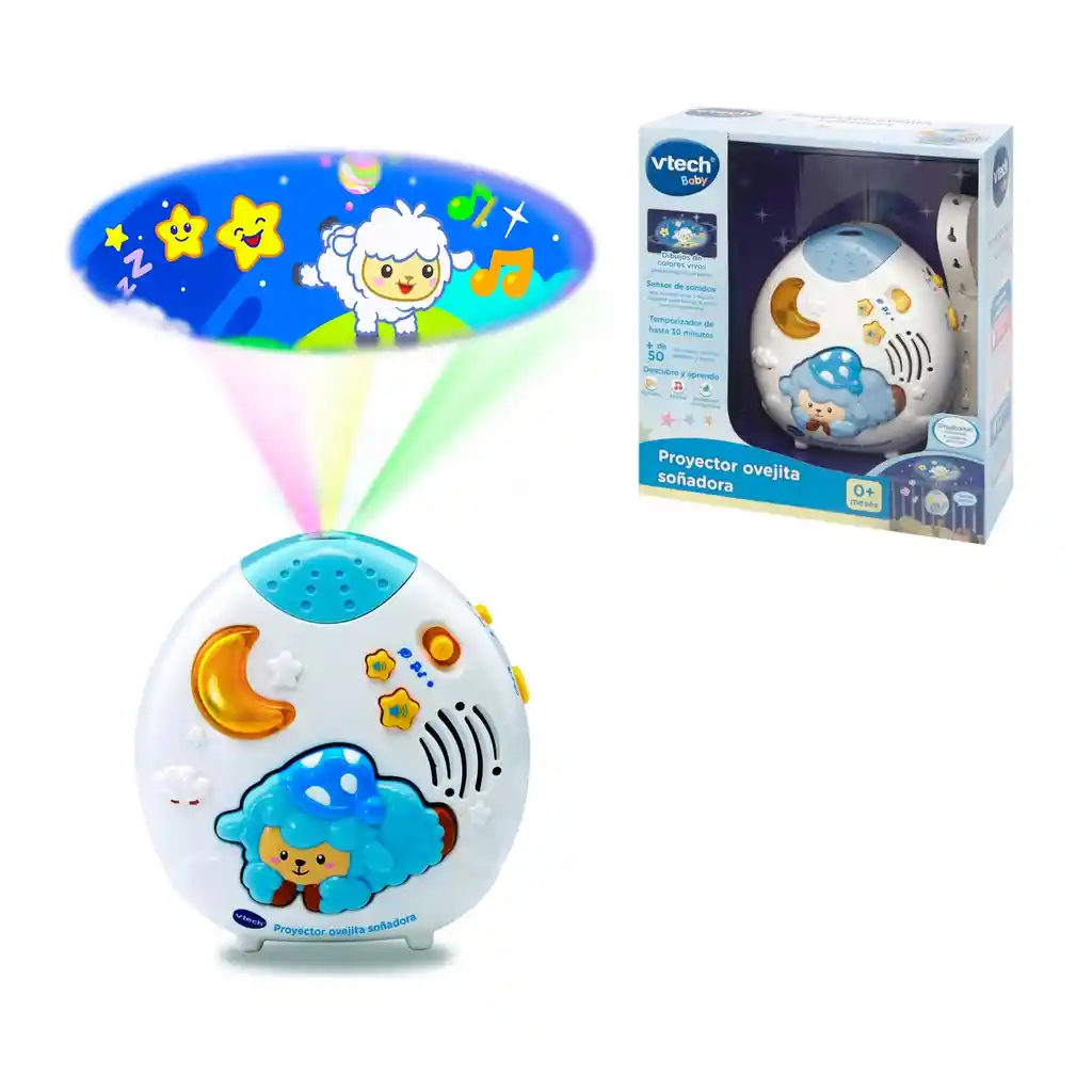 ¡Acurrúcate y duerme feliz! El bebé será el más feliz de la casa. Tiernas imágenes proyectadas en el techo, acompañadas de agradables melodías, sonidos y canciones formarán el ambiente ideal para obtener los más dulces sueños. Proyección de imágenes animadas en colores vivos en el techo para calmar al bebé durante la noche. 2 modos: canciones de cuna, melodías y dulces sonidos. Temporizador de 10, 20 y 30 minutos. Sensor de sonido que activa luces y música relajante para calmar al bebé cuando lo necesite. 40 melodías y 3 canciones. Tira de sujeción para acoplar a la cuna, aunque también puedes ponerlo en la mesilla. Posibilidad de desactivar la proyección luminosa para utilizar solamente el modo nanas mientras la luna se ilumina. Control de volumen.