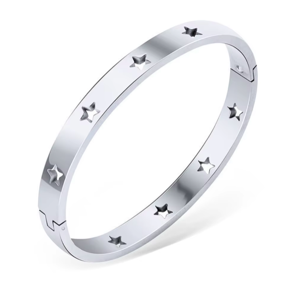 PULSERA ACERO QUIRÚRGICO CUFF ESTRELLAS PLATEADA