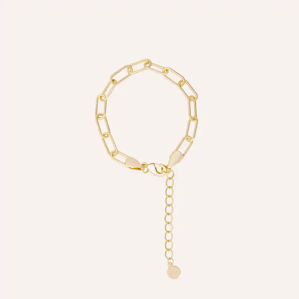 La pulsera Amiz, es una pulsera de baño de oro de 18 quilates, compuesta por grandes eslabones los cuales van entrelazados entre si. Esta pulsera es ideal para agregarle un charm de nuestra colección. Longitud: Ajustable. Material: Baño de oro 18 quilates, libres de níquel. ¡Todas nuestras joyas vienen con un packaging especial que te enamorará!