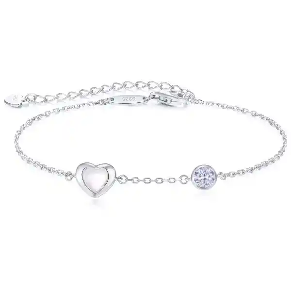 Pulsera hecha de Plata Italiana 925 y circones de alta calidad. Color Circón: Blanco. Tamaño dije corazón: 0,9 cm. Tamaño circulo: 0,5 cm. Largo: 17 cm más 4,5 cm de extensión. Libre de níquel y plomo. Incluye elegante caja.