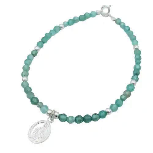 Hecha en plata 925 y piedra apatita. Dimensiones: 18 cms largo aprox.