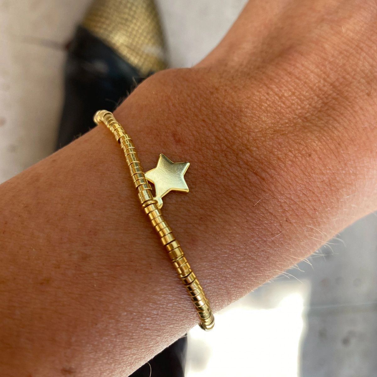 <p>Pulsera con estrella de 8 mm de diámetro, enchapada en oro 18K o en plata libre de níquel e hipoalergénica.Mide 18 cm con alargue hasta 23 cm</p>