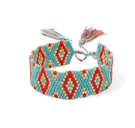 Déjate enamorar por la belleza y originalidad de nuestra pulsera ancha Bijoux Miyuki Geométrica. Confeccionada con mostacillas, esta pulsera añade elegancia a cualquier look. Sus detalles geométricos la convierten en una pieza única que refleja tu estilo sofisticado. ¡Hazla parte de tu colección exclusiva hoy!