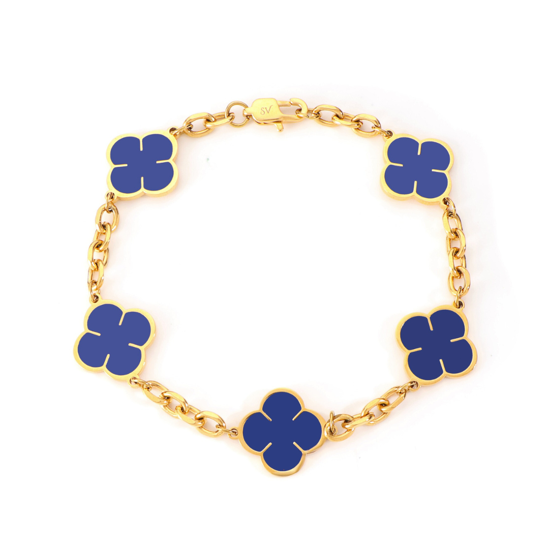 <p class="whitespace-normal break-words">La Pulsera Blue Clover Oro de Saint Venik está elaborada para durar y demostrar la <strong>gran confianza</strong> que llevas contigo. Un diseño sofisticado con <strong>tréboles azules y acabado dorado</strong> que hará que <strong>noten tu presencia y destaques</strong> en todo lugar.</p><p class="whitespace-normal break-words"><strong>Características:</strong></p><p class="whitespace-normal break-words"><strong>✓ Acero inoxidable 316L</strong></p><p class="whitespace-normal break-words"><strong>✓ Enchapado de Oro 18k</strong></p><p class="whitespace-normal break-words"><strong>✓ Tréboles azules</strong></p><p class="whitespace-normal break-words"><strong>✓ Resistente al agua, sudor y calor</strong></p><p class="whitespace-normal break-words"><strong>✓ Hipoalergénico (sin piel verde)</strong></p><p class="whitespace-pre-wrap break-words">Grosor: 4mm. Tamaño: 19cm.</p><p class="whitespace-normal break-words">El cumplido preferido que han recibido nuestros clientes → <strong>"Qué linda se te ve...Me encanta que uses Accesorios"</strong></p>