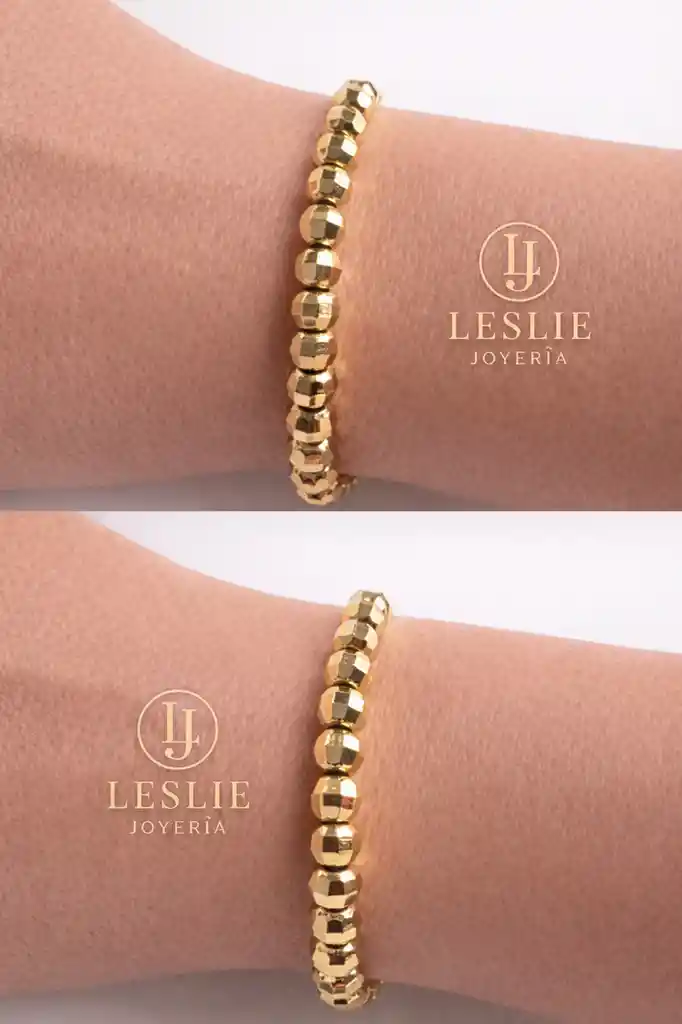 Pulsera con balines ajustable laminada en oro de 18k.