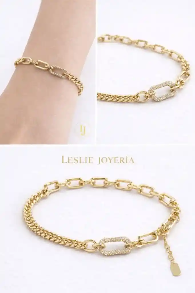 Pulsera con hermoso diseño con micro circones laminado en oro de 14k mide 20cm.
