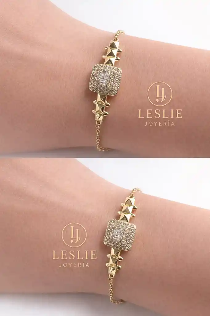 Pulsera con elegante diseño de micro circones laminada en oro de 18k mide 17cm.
