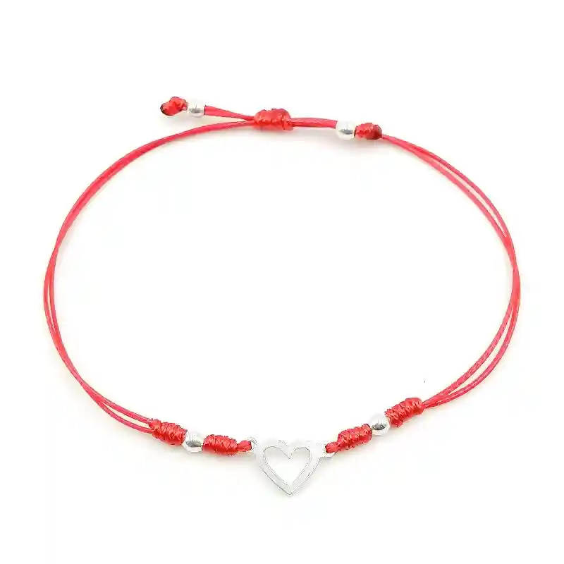 Pulsera Corazón Calado Plata Fina 925 Cordón Rojo. Calidad garantizada, libre de níquel.