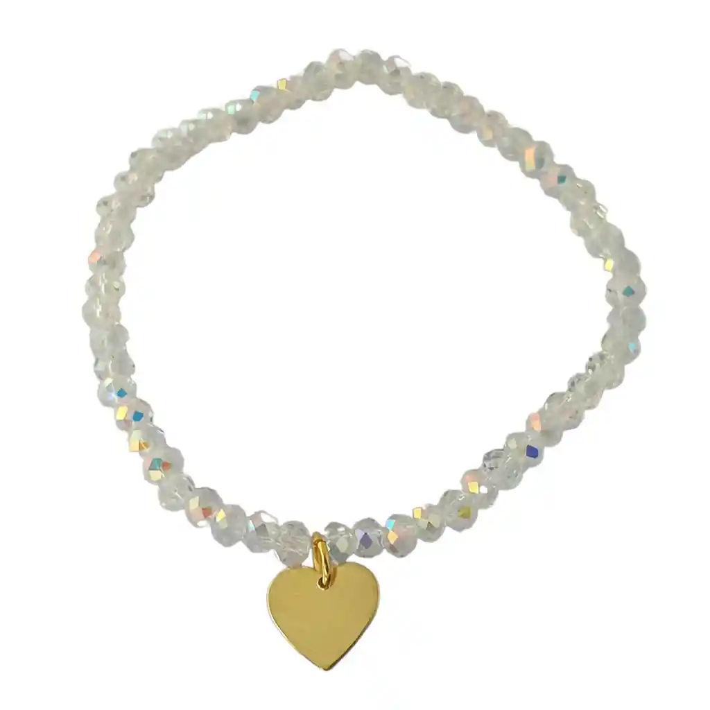 Deja que tu corazón brille con nuestra Pulsera Cristal Tornasol Corazón, una expresión deslumbrante de amor y elegancia. Cada cristal refleja los colores del arco iris, creando un espectáculo de luz y color que cautiva a quien lo ve. El delicado corazón Enchapado en Oro de 18 quilates añade un toque de lujo y sofisticación a esta pieza única. Medidas: Tamaño ajustable hasta 18cm. Tamaño corazón 11mm ancho y 10mm largo. Peso 4 gr.