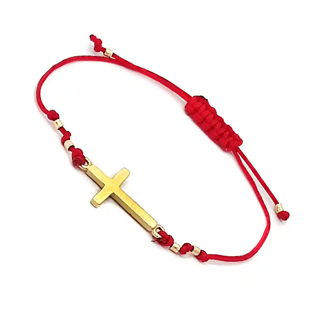 Expresa tu fe con nuestra elegante Pulsera Cruz, con un cordón rojo y delicadamente enchapada en Oro 18K. La cruz, símbolo de esperanza y devoción, brilla con el esplendor del oro, mientras que el cordón rojo agrega un toque de color y protección. Sus medidas son un largo ajustable hasta 22cm. La cruz 21mm de largo y 19mm de ancho. La pulsera pesa 1,7 gr.