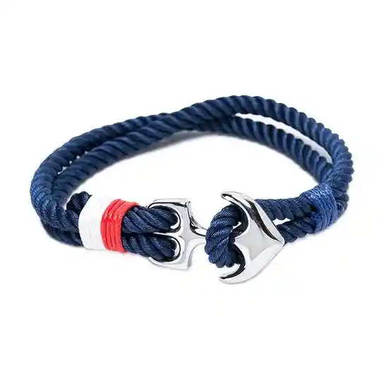 Pulsera Elaborada en Cuerda Color Azul Con Diseño de Ancla en Acero Color Plateado y Estilo Náutico. 17 cm (Diámetro)