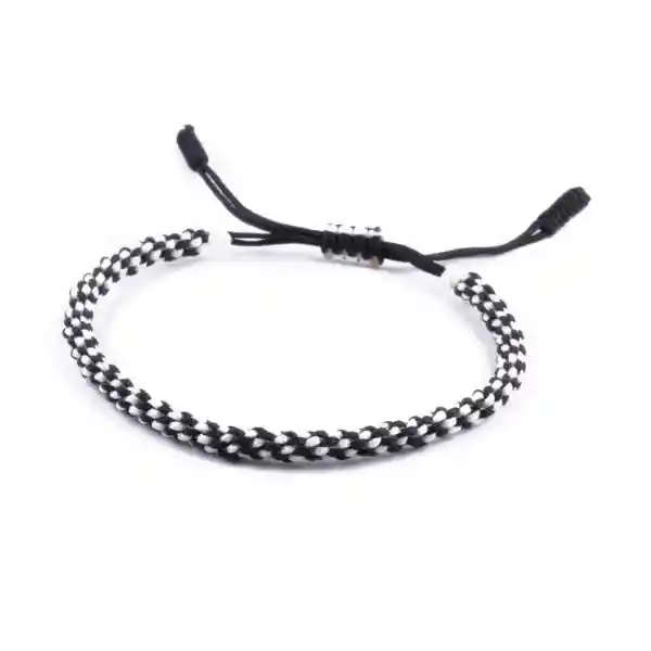 Beneficios: Según la tradición, las pulseras de cuerda negra ahuyentan a los malos espíritus y el mal. Le otorga buena salud y atrae riquezas a la persona que la porta. La cuerda blanca representa una larga vida. Características: Tipo de producto: Pulsera de la suerte Material: Hilo y cuerdas Tibetanas Técnicas de fabricación: Hecha a mano Tamaño: 17-25 cm (Ajustable) Peso: 2 gr