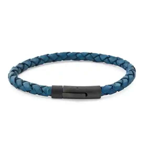 Línea de Cuero Trenzado Azul. Broche de Acero a Presión. Diseño Ideal Para Usar y Combinar Con Otros Accesorios Como Relojes u Otras Pulseras. Dos Tallas a Elección de Acuerdo al Tamaño de la Muñeca. Especificaciones: Material: Cuero Pu (Poliuretano) y Acero. Color: Azul. Diámetro: 185 cm. 185 cm (Diámetro)