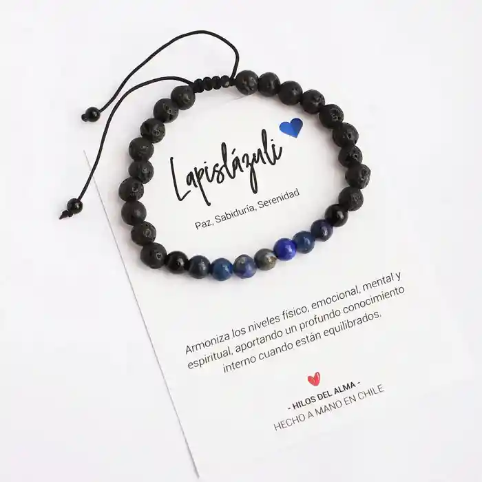 Pulsera de Caballero ajustable, elaborada con piedra natural Lapislázuli, piedra volcánica e hilo de algodón : Lapislázuli : Armoniza los niveles físico, emocional, mental y espiritual, aportando un profundo conocimiento interno cuando están equilibrados. Piedra volcánica: Atraen vibraciones positivas y son capaces de brindarnos estabilidad emocional ya que nos permiten eliminar las emociones extremas. Nos transmiten serenidad y paciencia para afrontar situaciones imprevistas o de estrés Mantén tus joyas fuera de contacto de productos como cremas y perfumes. Usa un paño especial no abrasivo para que no se rayen y límpialos con productos especializado.