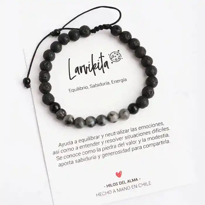 Pulsera de Caballero ajustable, elaborada con piedra naturales Larvikita y piedra volcánica e hilo de algodón : Piedra volcánica: Atraen vibraciones positivas y son capaces de brindarnos estabilidad emocional ya que nos permiten eliminar las emociones extremas. Nos transmiten serenidad y paciencia para afrontar situaciones imprevistas o de estrés Mantén tus joyas fuera de contacto de productos como cremas y perfumes. Usa un paño especial no abrasivo para que no se rayen y límpialos con productos especializado.